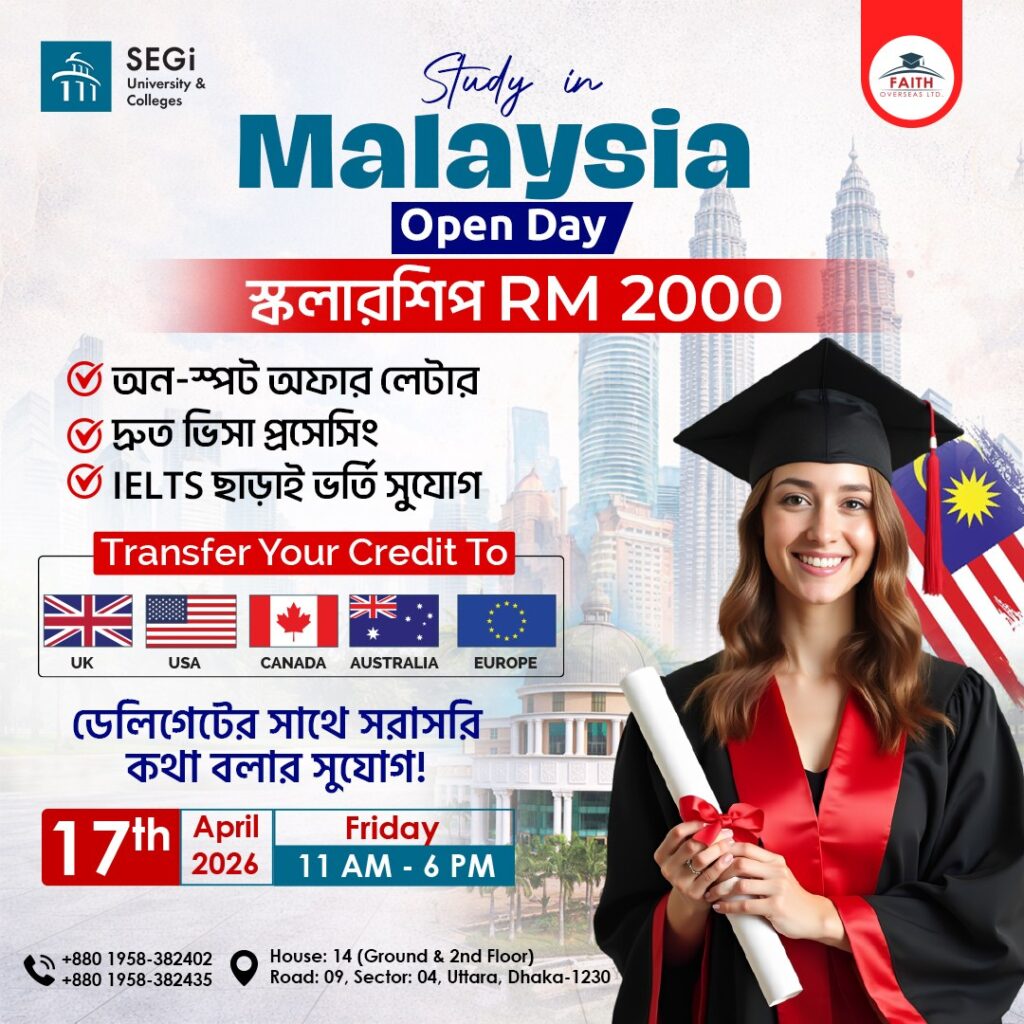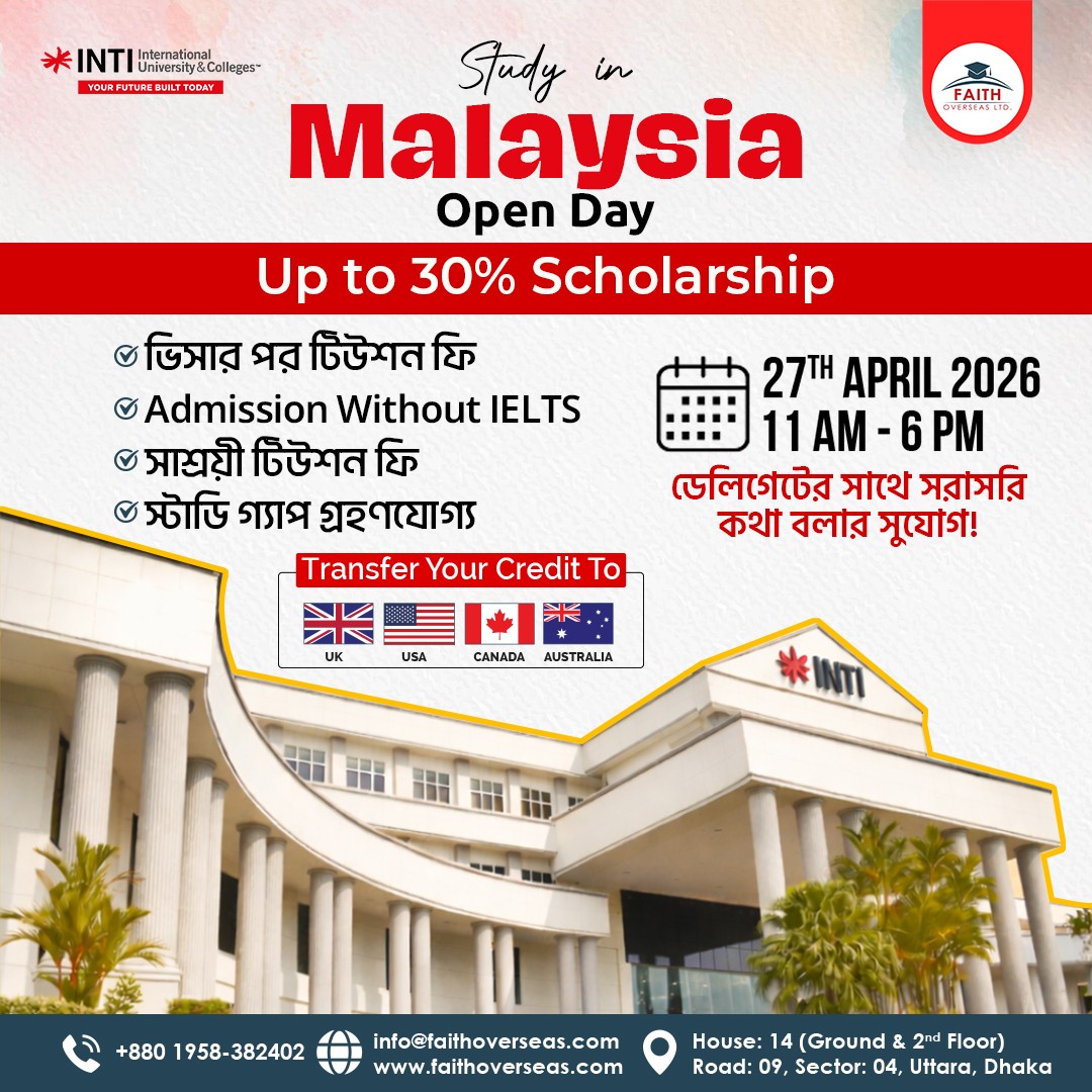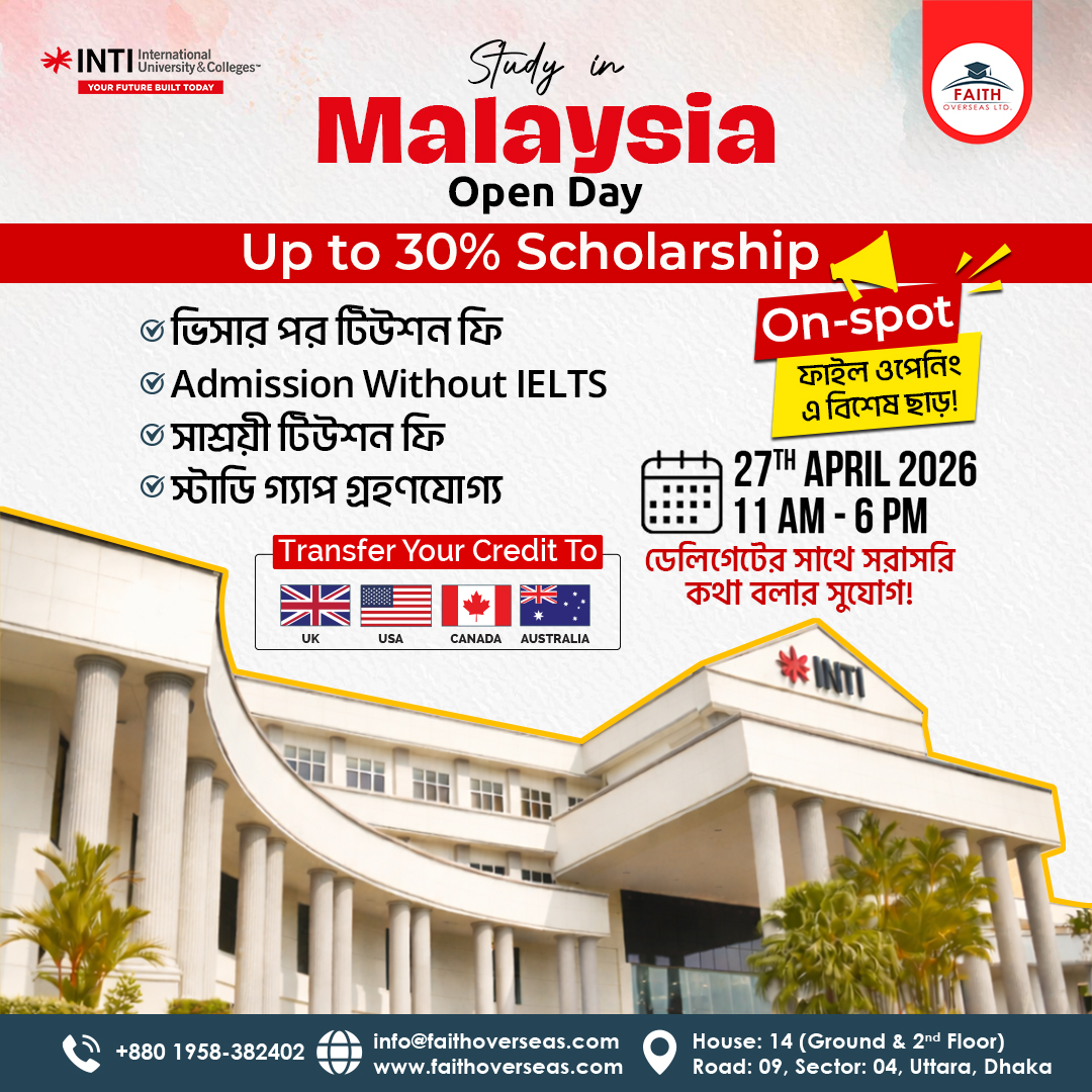 ঢাকা, ২ জুলাই ২০২৫ — শীর্ষস্থানীয় বিদেশে উচ্চ শিক্ষায় পরামর্শ ও সেবা প্রদানকারী প্রতিষ্ঠান ফেইথ