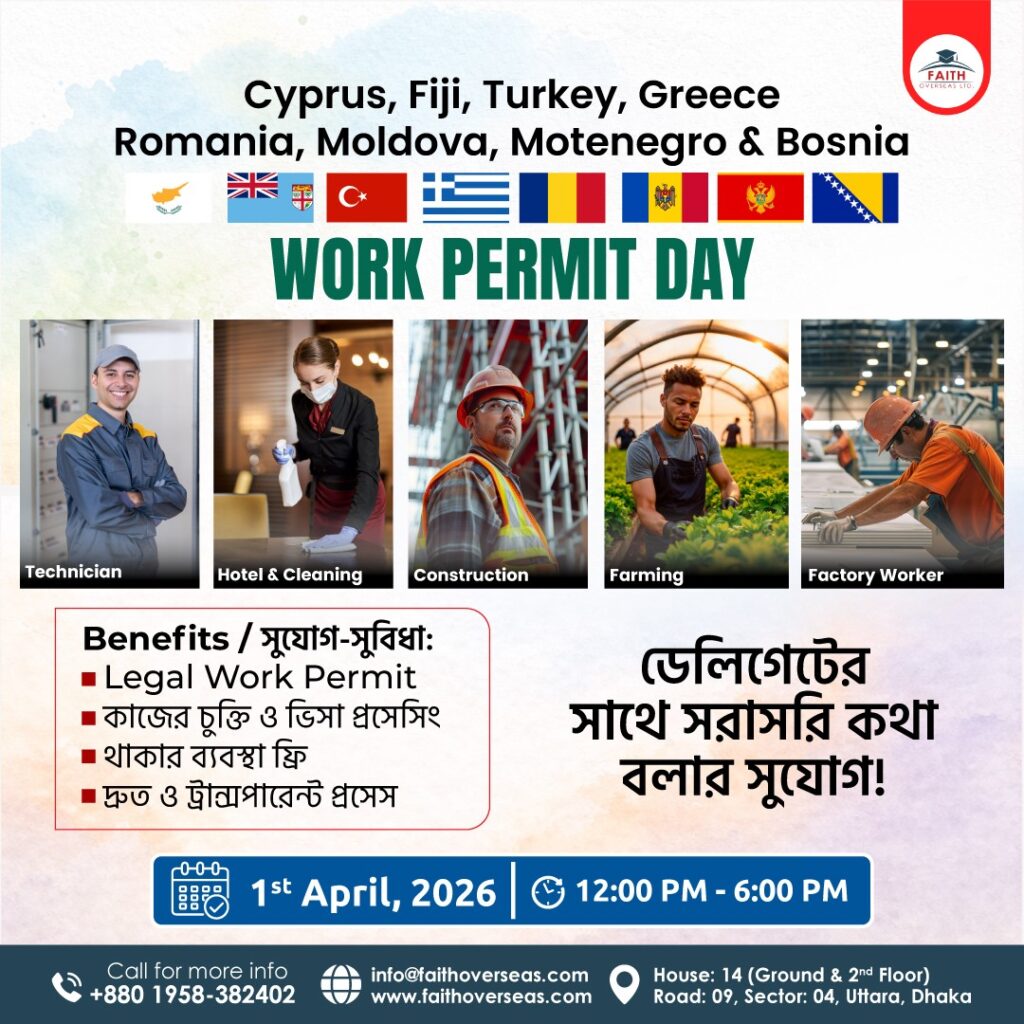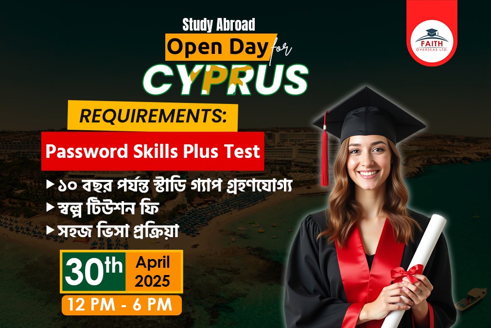 Posted on Shadid Al FoiezTrustindex verifies that the original source of the review is Google. Alhamdulillah I got my Cyprus visa. Many thanks to Faith Overseas for my entire processing. Faith Overseas helped me throughout my journey and their service is very good.Posted on ibnat khanTrustindex verifies that the original source of the review is Google. My dream of going abroad for studying my dream subject came together bcz of the help faith overseas ltd provided through the whole journey. Thank you so much for everything.Posted on Md Abdullah Al Mamun 4049Trustindex verifies that the original source of the review is Google. I got my Europe consultancy support through Ready Global Solutions and the experience was solid. Their guidance was clear, the process felt authentic, and they handled everything with real professionalism. If someone needs trustworthy consultancy for Europe, they’re genuinely a good pick.Posted on Nusrat Jahan MimTrustindex verifies that the original source of the review is Google. I got my foreign study admission done through Ready Global. They were supportive at every step. Truly satisfied with their service.Posted on Umma Taslima AhmedTrustindex verifies that the original source of the review is Google. Ready Global helped me a lot throughout my study abroad process. Their guidance was clear and stress-free. I’m really happy with their service.Posted on zahid badhonTrustindex verifies that the original source of the review is Google. I took services from Ready Global and successfully came abroad for my studies. Their guidance and support made the whole process easy for me. I am fully satisfied and highly recommend Ready Global.Posted on nehar ranjan sahaTrustindex verifies that the original source of the review is Google. I have received my Cyprus permit visa, and I am truly grateful to Faith Overseas LTD. Their team is incredibly helpful, professional, and supportive throughout the entire process. Thanks to them, I received my visa within just two months. Faith Overseas LTD is truly the best agency in Bangladesh.Posted on Nawfat RahmanTrustindex verifies that the original source of the review is Google. I have completed my application and visa process for Malaysia (Asia Pacific University of Technology) from Faith Overseas. They have helped all through the whole process. Appreciate their assistance.Posted on Sk ShiedTrustindex verifies that the original source of the review is Google. I am very glad to share my experience that this agency faith oversees are really amazing.they are very helpful to me to achieve my visa journeyPosted on Ferdous Bin SarwarTrustindex verifies that the original source of the review is Google. Thank you to team Faith for this smooth ride to my VISA success. I would surely love to recommend Faith as your guide to overseas and fulfill your dream of studying across the Globe.