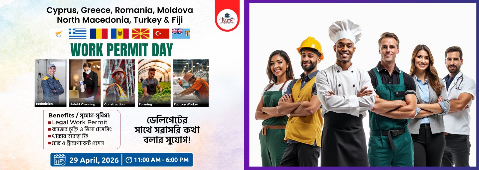 Faith Overseas Ltd. নিয়ে এসেছে এমন একটি সুযোগ, যেখানে আপনি এখন থেকেই প্রস্তুতি নিয়ে সরাসরি Europe-এ বৈধভাবে কাজের পথে এগিয়ে যেতে পারবেন।